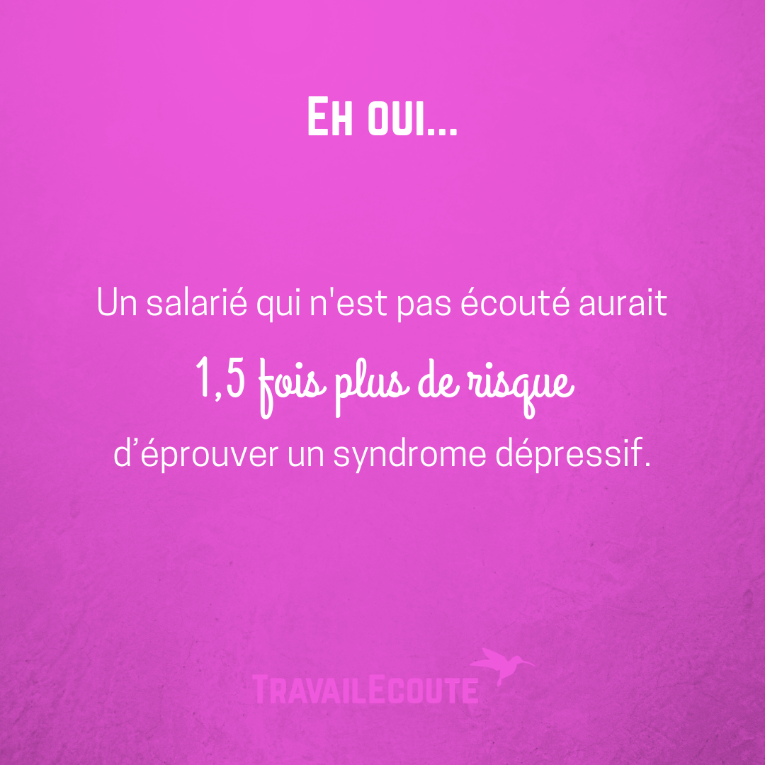 Les journées au travail peuvent être très longues, ce sont ces petits détails du quotidien qui, accumulés, fatiguent petit à petit. Pourtant, d’après les statistiques de l’institut DARES, un salarié qui est écouté aurait 1,5 fois moins de « chances » d’éprouver un syndrome dépressif qu’un salarié qui est simplement écouté. L’écoute permettrait de vaincre le burn-out ?