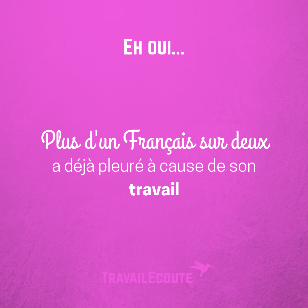 58% des personnes ont répondu « oui » à l’affirmation suivante : « Il m’est déjà arrivé de pleurer à cause de mon travail » (source : Enquête Parlons Travail – CFDT). Et vous ? Avez-vous déjà pleuré à cause de votre travail ?