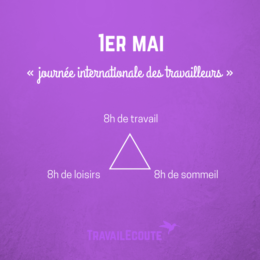 Le samedi 1er mai 1886, les syndicats américains lancent un mouvement revendicatif pour la journée de 8 heures, grève qui réunira près de 400 000 salariés et paralysera de nombreuses usines. 3 ans après, pour le centenaire de la Révolution Française, le 1er mai devient « la journée internationale des travailleurs ». Une pensée à ceux qui se sont battus pour cette journée, le bilan fut quand même de 9 morts et de 35 blessés… Alors, en 1890, les manifestants symbolisent cette victoire par un triangle rouge représentant les 8 heures de travail, 8 heures de sommeil, 8 heures de loisirs gagnées.