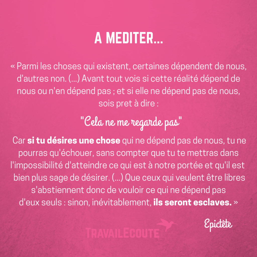 Mais comment distinguer ce qui dépend de nous et ce qui ne dépend pas de nous (au travail comme dans la vie en générale) ?