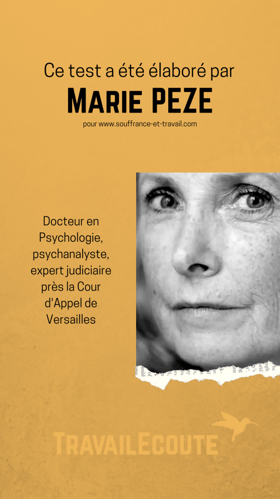 Marie Pezé rappelle que le test de propagation du burn-out est un auto-questionnaire permettant aux patients et cliniciens de faire un point d’étape sur l’épuisement professionnel ressenti.